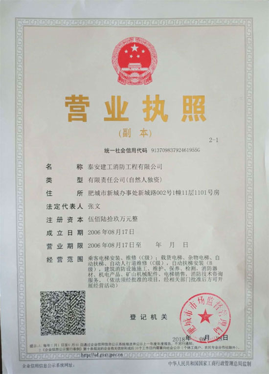 泰安建工消防工程有限公司,注冊(cè)成立于 2006 年8 月,注冊(cè)資金569 萬(wàn)元。具有山東省公安廳消防局、山東省建筑工程管理局頒發(fā)的建筑消防設(shè)施貳級(jí)施工資質(zhì),2012 年9 月13日取得特種設(shè)備安裝改造許可證(電梯),2019 年5月取得建筑消防設(shè)施維修保養(yǎng)二級(jí)資質(zhì)。是山東消防協(xié)會(huì)會(huì)員單位,2007 年6月被泰安市工商局命名為市級(jí)守合同重信用企業(yè)。 公司成立以來(lái),一直奉行“質(zhì)量第一,用戶至上,社會(huì)利益為先”的原則。公司在“重工程質(zhì)量,創(chuàng)精品工程”的戰(zhàn)略方針指導(dǎo)下,已完成及目前在建的消防工程近百余項(xiàng)。公司下設(shè)工程部、技術(shù)部、維修部、財(cái)務(wù)部,工程技術(shù)專業(yè)人員 42 人。擁有一級(jí)、二級(jí)注冊(cè)建造師6 人,公司經(jīng)理、技術(shù)負(fù)責(zé)人、財(cái)務(wù)負(fù)責(zé)人均具有高級(jí)專業(yè)職稱,所有技術(shù)人員均經(jīng)省消防局或省建管局專業(yè)培訓(xùn)并持證上崗。主要從事建筑消防設(shè)施施工、維護(hù)、保養(yǎng)、檢測(cè);乘客電梯、載貨電梯、雜物電梯、自動(dòng)扶梯、安裝、維修;消防器材、機(jī)電產(chǎn)品、礦山機(jī)械配件、電梯銷售;消防技術(shù)咨詢服務(wù)。